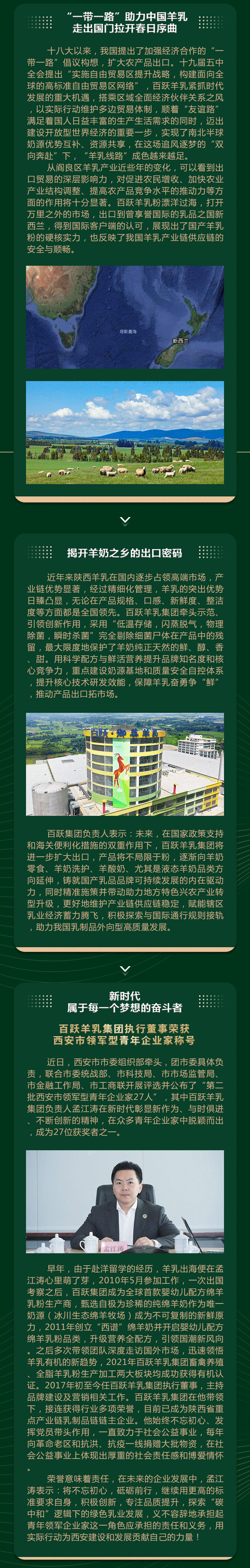 羊乳跃国门,“鲜香”飘世界——百跃羊奶粉出口新西兰 百跃羊乳集团执行董事荣获西安市领军型青年企业家称号