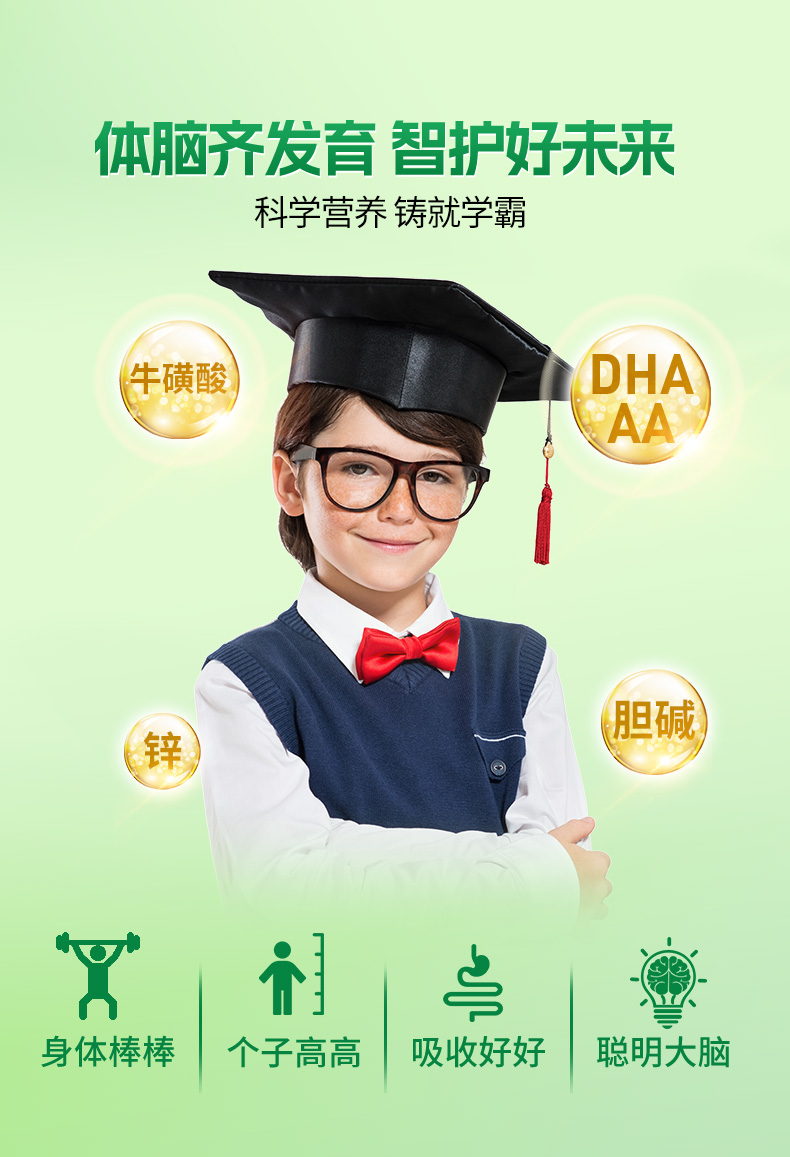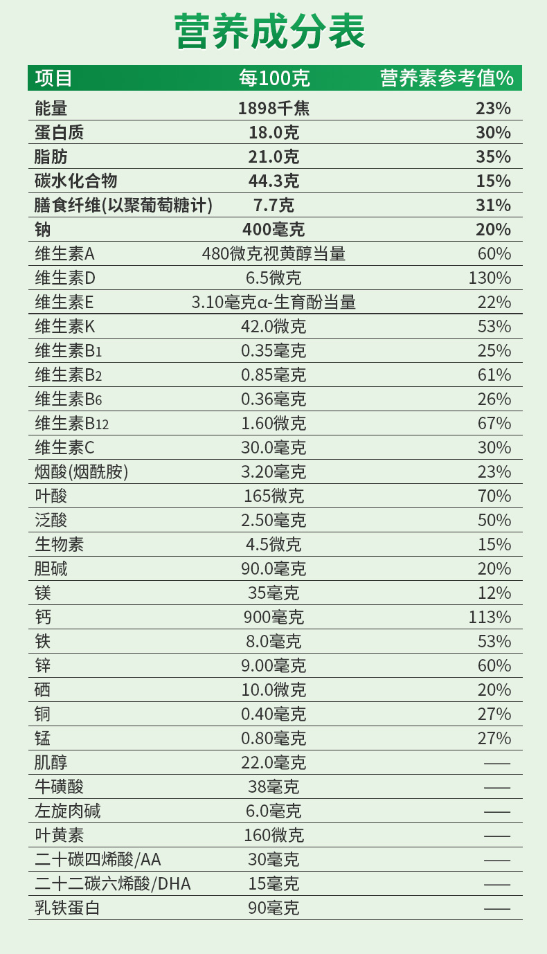 √ DHA+AA、叶黄素、胆碱、牛磺酸,助力脑眼发育;